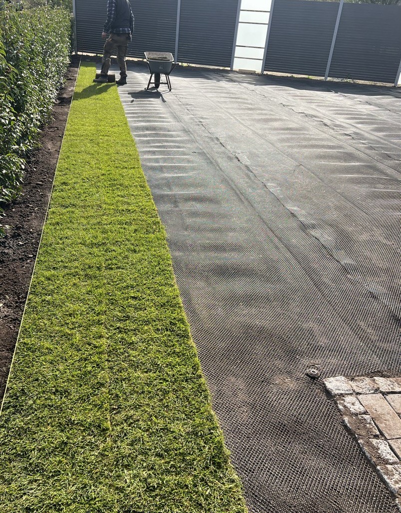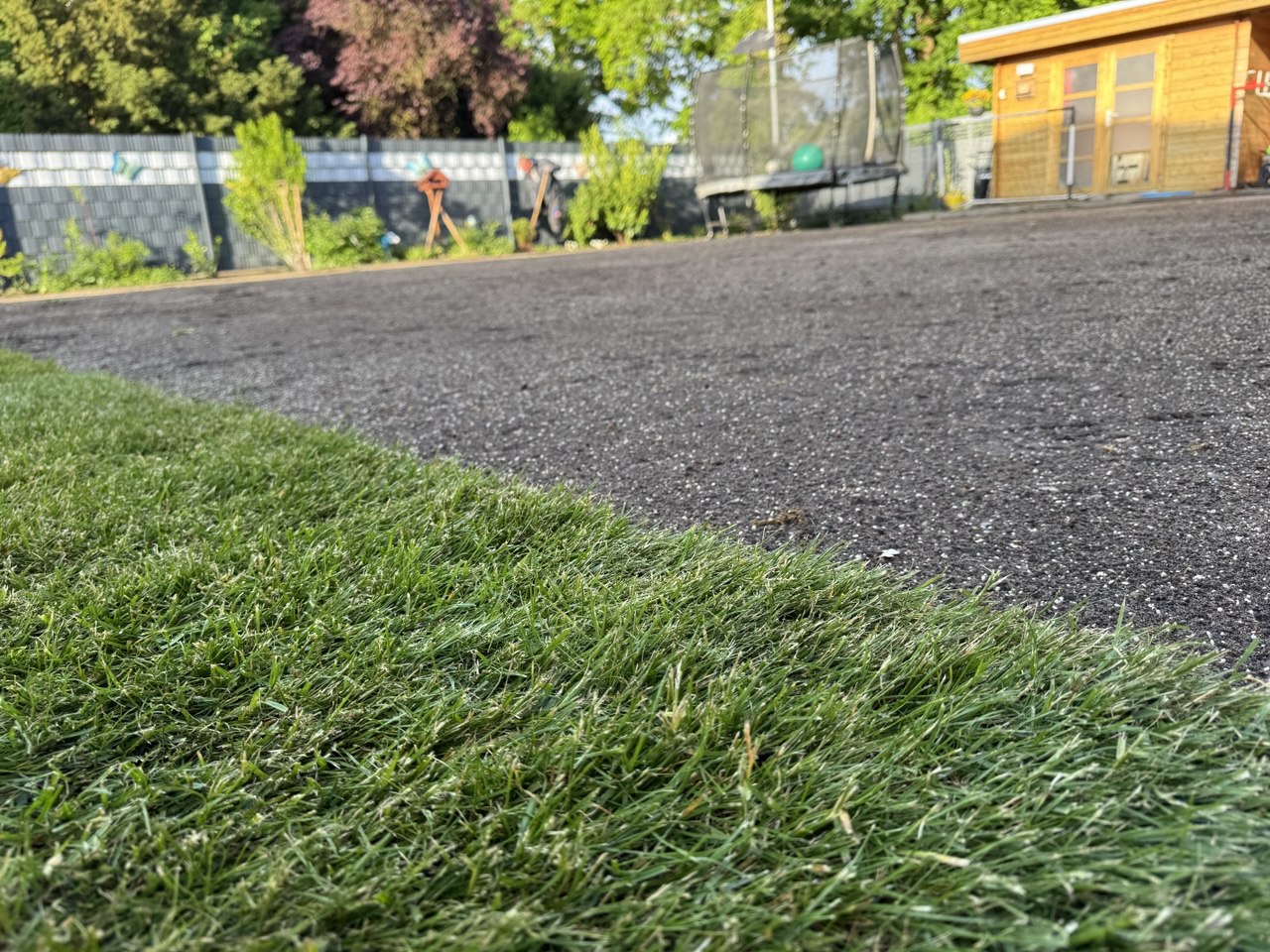 - Verlegung von Rollrasen